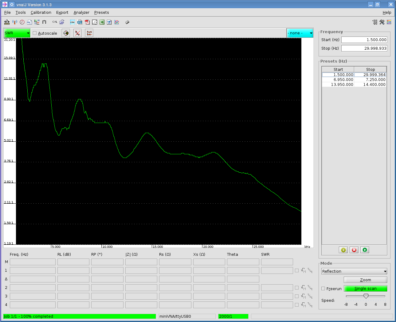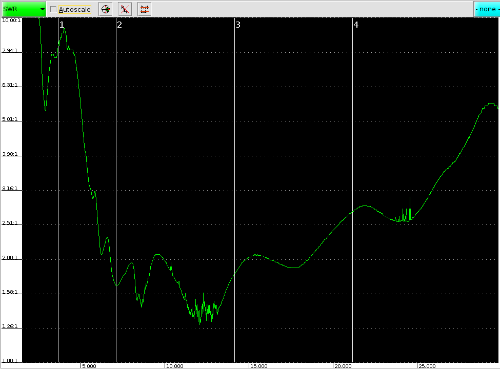 Das SWR über den KW-Bereich von 1,5 bis 30 MHz sah aus wie folgt: