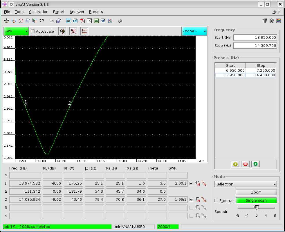 lief die Analyzeranzeige mit, und es fiel auf, dass es (für 2 m)